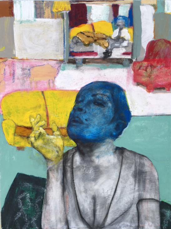 Blue Moon 2016 black pastel, latex and acrylic paint on canvas (sold)