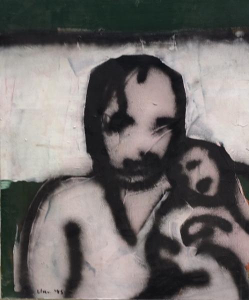 Father & Child (1985) 36"/30" latex paint, spray paint on canvas (NFS)