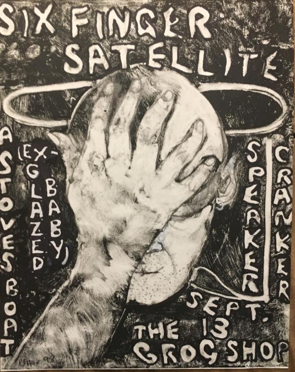 Speaker/Cranker, Six Finger Satellite Flyer (1998) monoprint, etching ink on Rives BFK