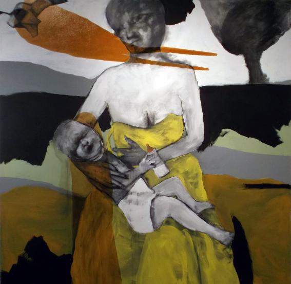 Extended Family 2013 75"/67" mixed paint and drawing media on canvas